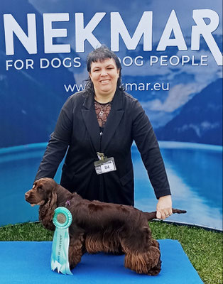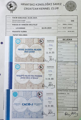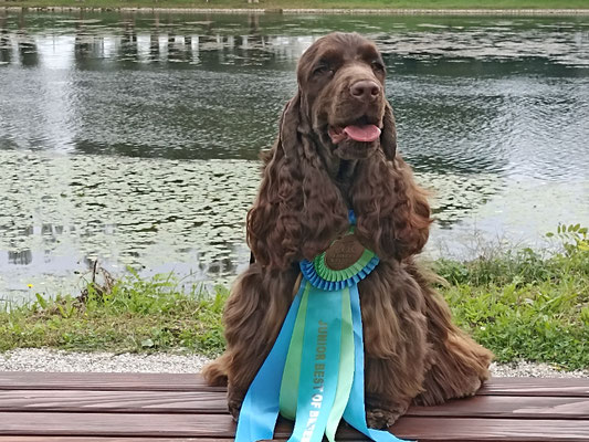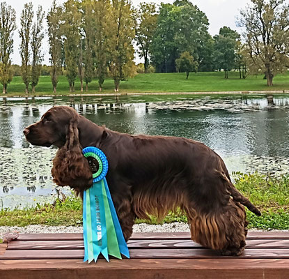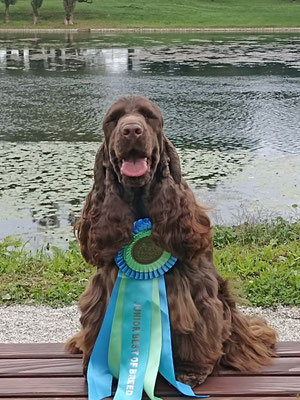 affrontando 3 volte il ring di razza e 3 volte il ring d'onore rappresentando al meglio con la sua coda felice il cocker nella classe Puppy, ecco i risultati: